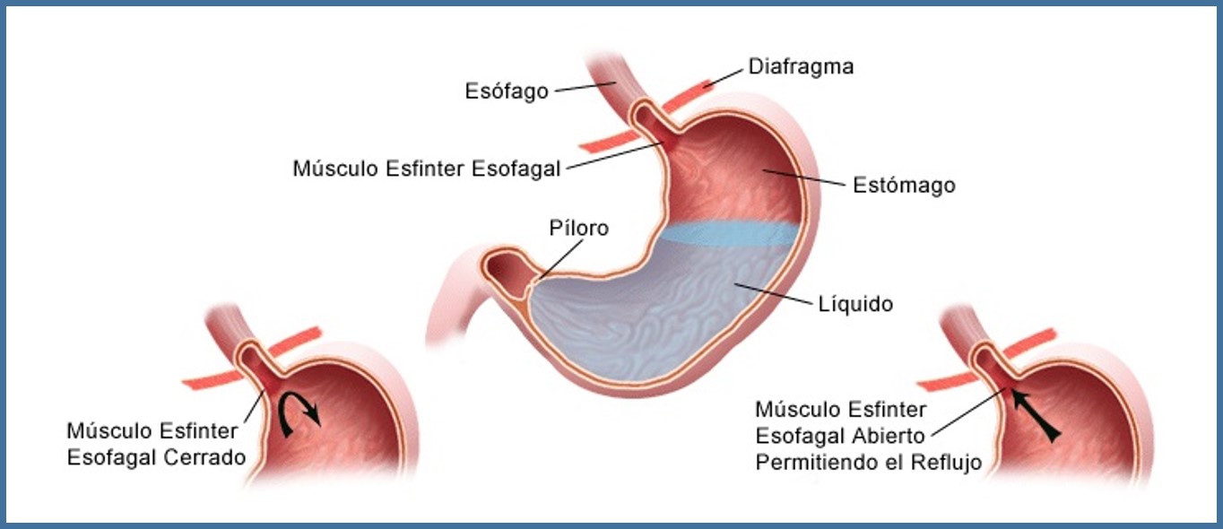 Al comer, los alimentos pasan de la boca al estómago a través de un tubo que se llama esófago. En el extremo inferior del esófago hay un pequeño anillo muscular que se denomina esfínter esofágico inferior (EEI). El EEI funciona como válvula de una vía, al permitir que pasen los alimentos hacia el estómago. Normalmente el EEI se cierra de inmediato después de tragar a fin de impedir que retrocedan los jugos gástricos —que tienen un alto contenido de ácido— al esófago. El reflujo gastroesofágico ocurre cuando el EEI no funciona como corresponde y permite que el ácido retroceda y queme la porción inferior del esófago. Esto irrita e inflama al esófago, y ocasiona la sensación de acidez, y con el tiempo puede incluso dañar el esófago.